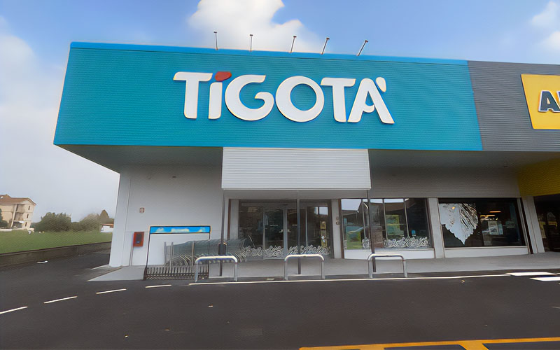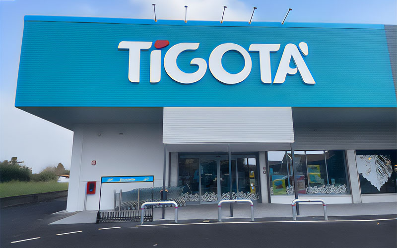 - Illuminated channel letters featuring the Tigotà logo, designed to maximize brand visibility even during evening hours;