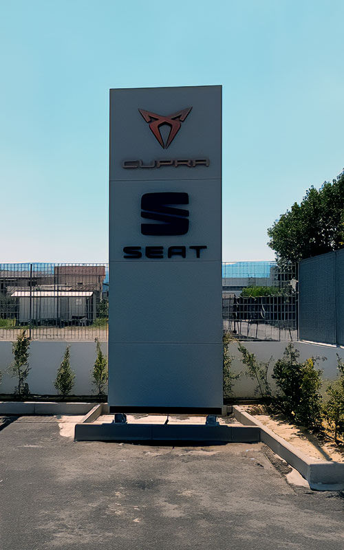 - Produzione e posa di totem, portale, banner CUPRA e SEAT e ragione sociale, tutti conformi agli standard di brand;