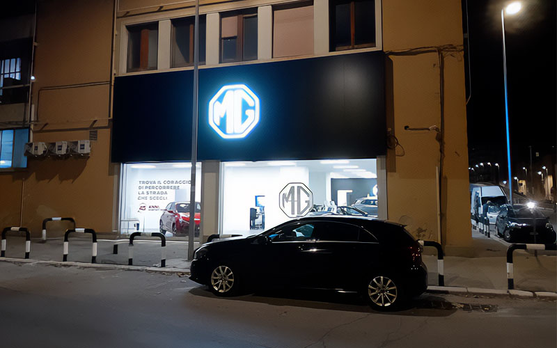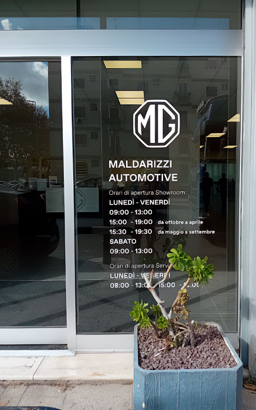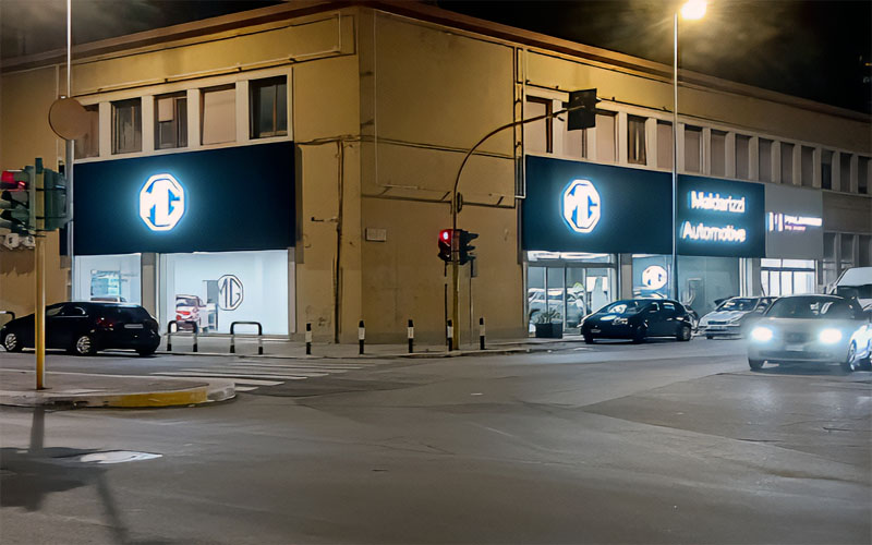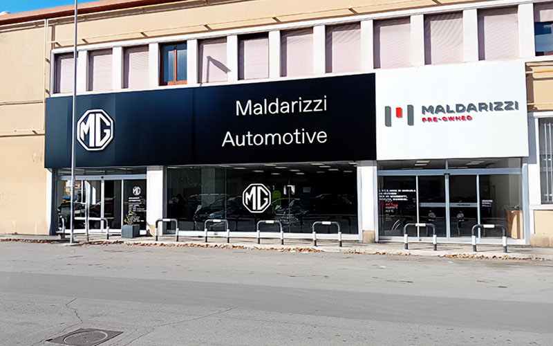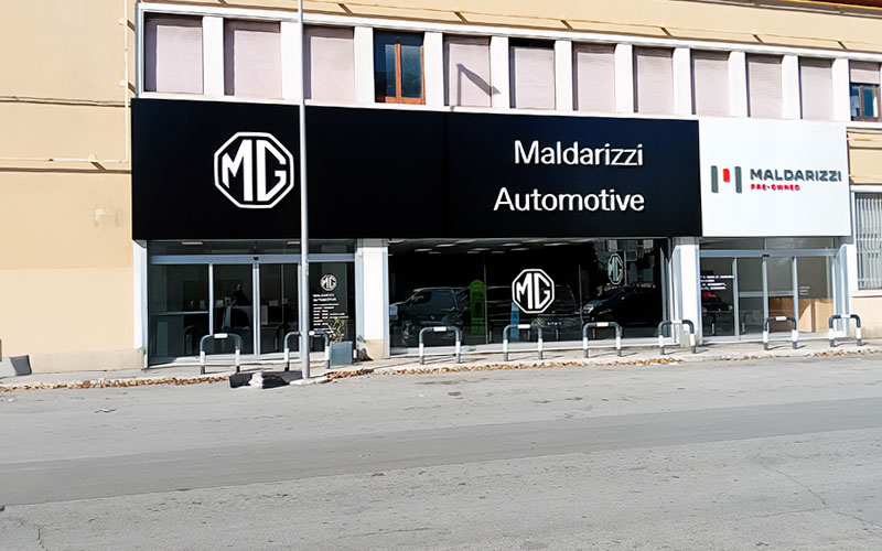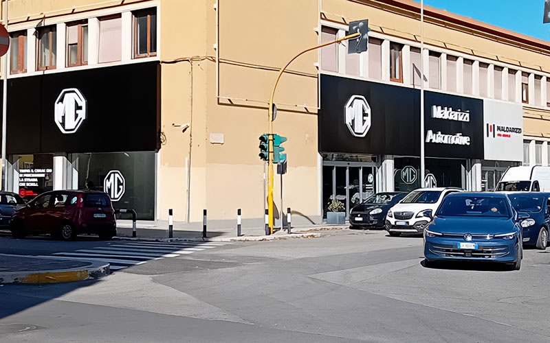 Il risultato finale offre a Maldarizzi Automotive Bari un’immagine esterna coerente, leggibile e allineata all’identità MG: fronti puliti, cromie uniformi e segnalazioni funzionali all’esperienza del cliente. Il dealer ha espresso piena approvazione, così come la casa madre, per qualità esecutiva e pulizia visiva dell’insieme.