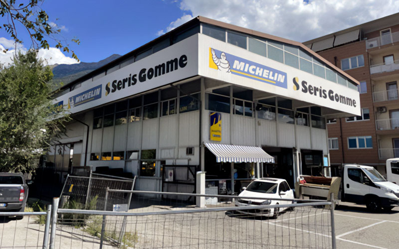 Grazie al lavoro svolto, il centro Seris Gomme di Aosta si presenta oggi con una veste completamente rinnovata: facciate tinteggiate e insegne di nuova generazione che valorizzano la struttura e rafforzano la visibilità del brand.