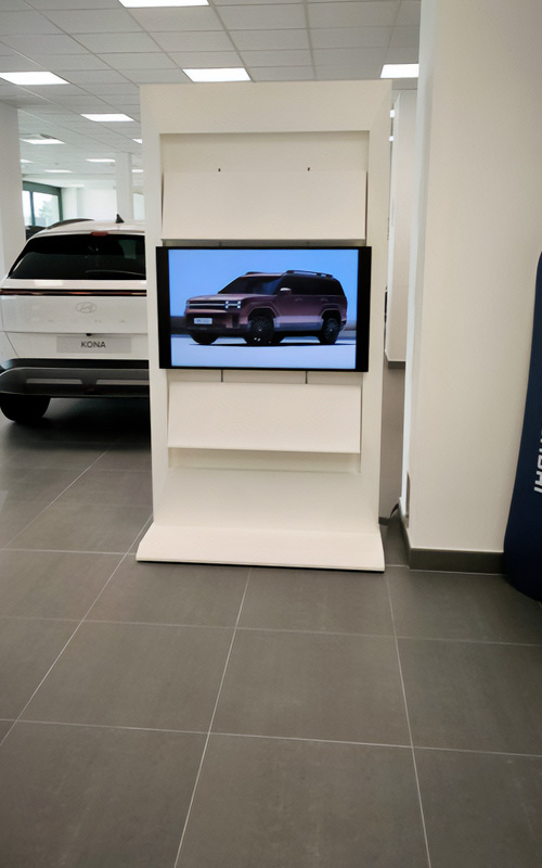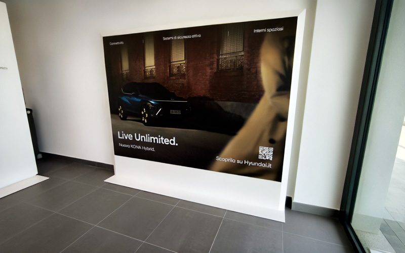 L’intervento presso la sede di Panero X AutoAlpina a Moncalieri ha avuto come obiettivo l’identificazione completa della concessionaria Hyundai, coinvolgendo sia l’esterno che l’interno dell’edificio. L’obiettivo era realizzare un punto vendita pienamente conforme all’identità visiva del brand.