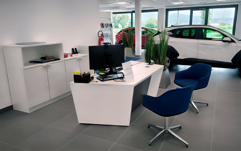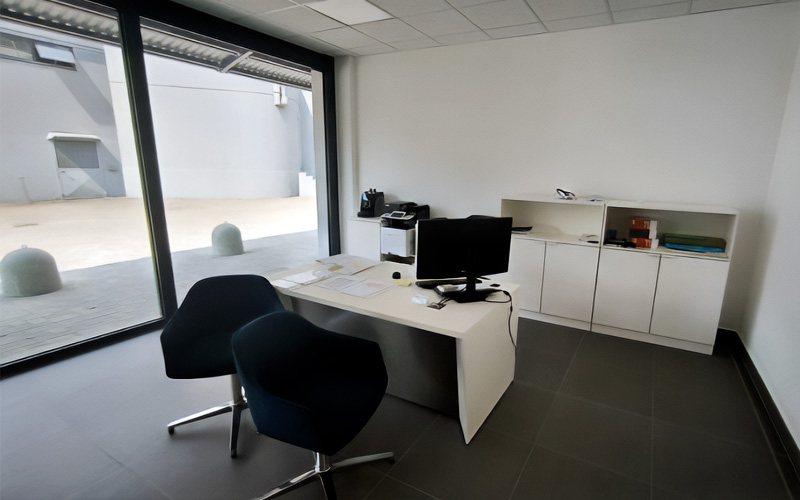 - Allestimento completo degli arredi interni, forniti da Vizona, tra cui scrivanie, elementi d’attesa, lampade e altri arredi funzionali.