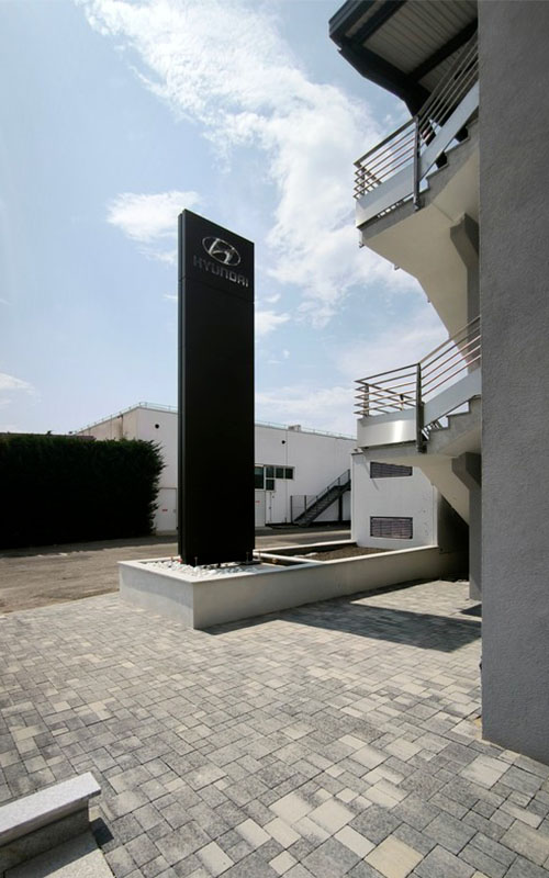 - Installazione delle insegne esterne: totem, portale, fascia e test drive, realizzate dal fornitore certificato Westiform.
