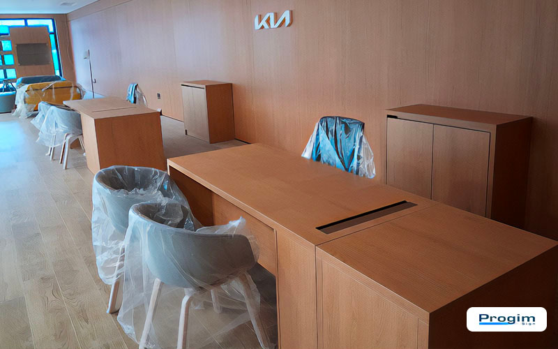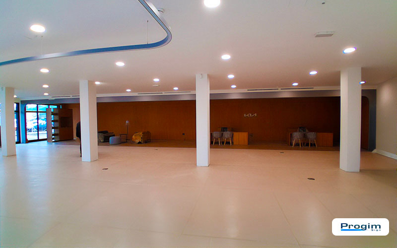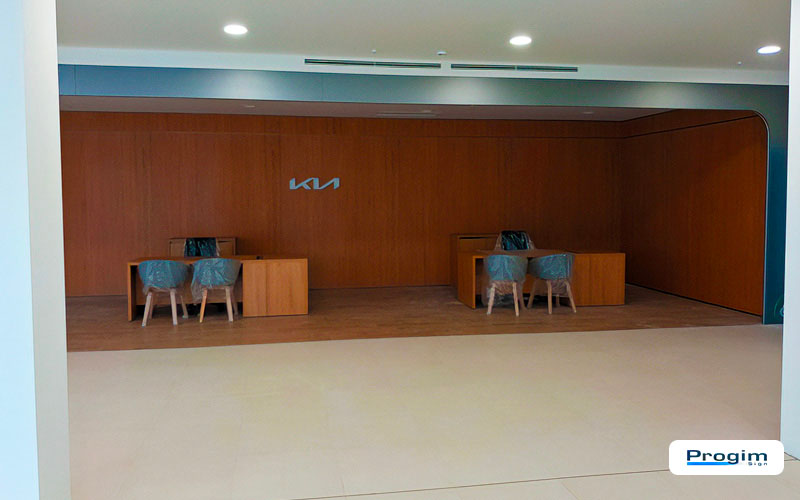 Per la sede Pasquarelli di Giulianova, Progim Sign ha gestito un intervento di rebranding completo in ambito KIA, con un focus chiaro: portare l’intero punto vendita in piena coerenza con il format ufficiale, lavorando su arredi, pareti e sull’elemento architettonico distintivo del brand, l’arco.