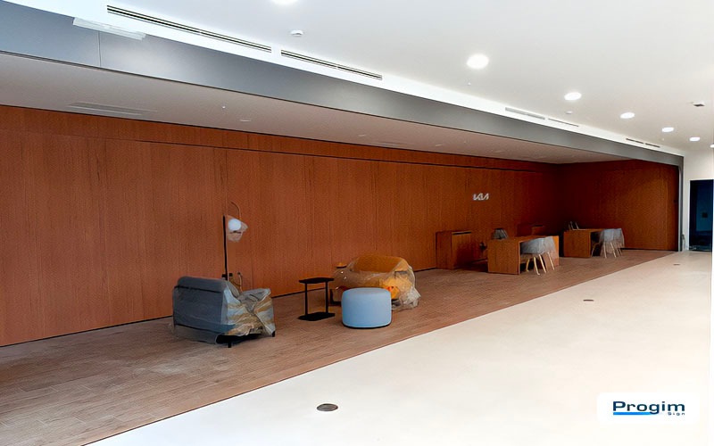 Per completare l’allestimento secondo gli standard richiesti, Progim Sign ha coordinato più fornitori e componenti: