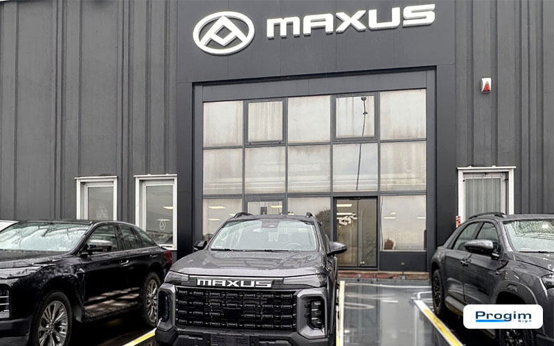 Su questa struttura è stata installata un’insegna MAXUS a lettere scatolate, studiata per garantire presenza e leggibilità.